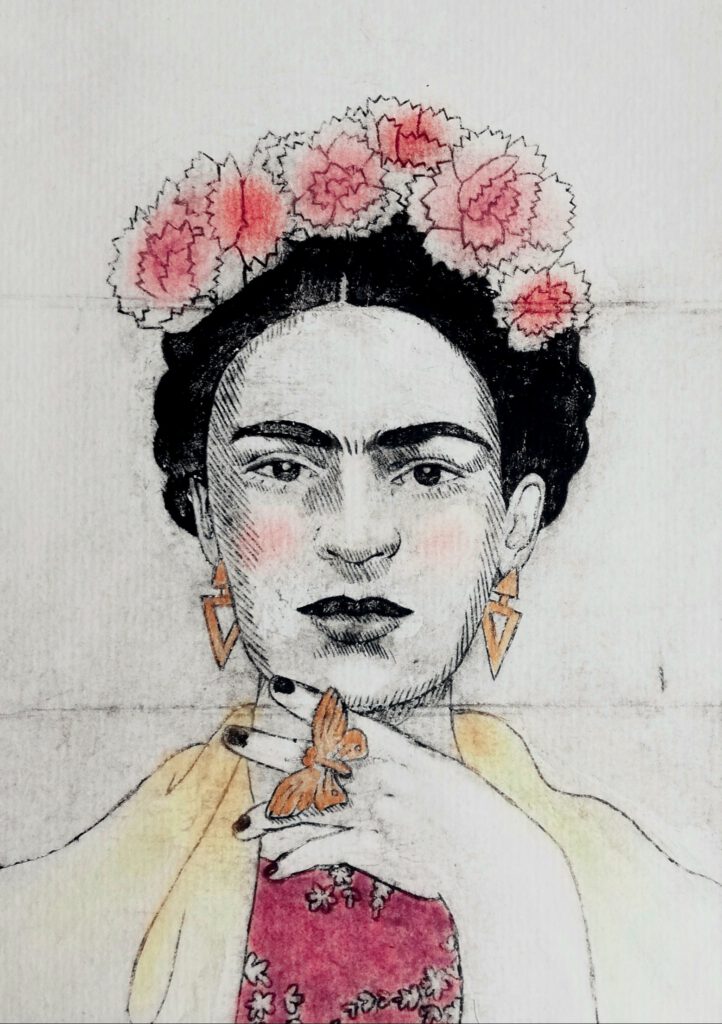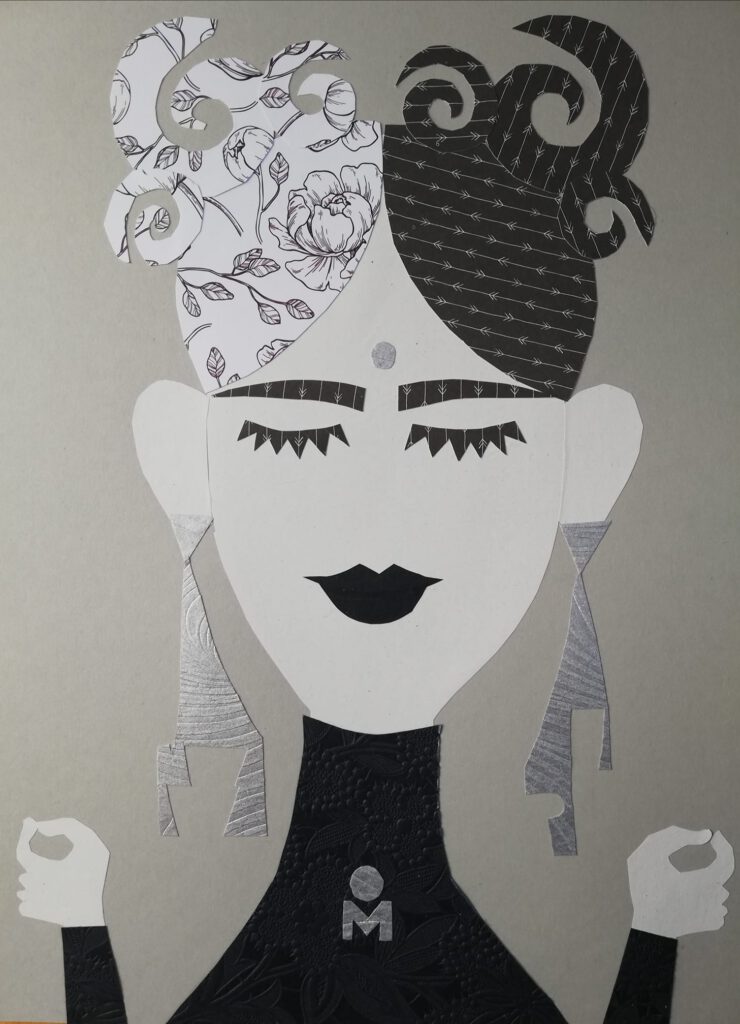 »Frida«, Mischtechnik,Tetra Pak-Druck mit Pastellkreiden, 2025