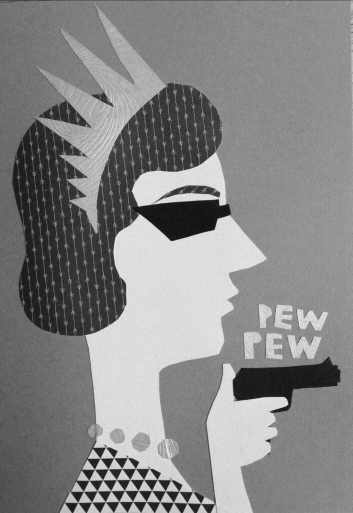»Pew Pew«, Collage mit Musterpapieren, 2021