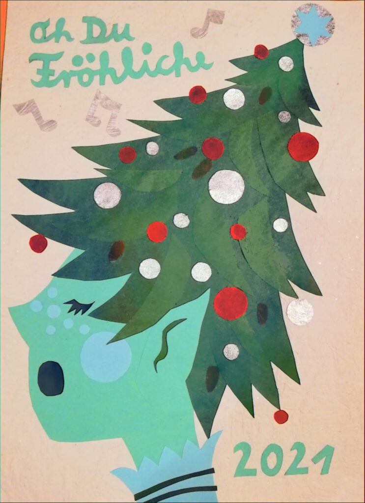 »Oh Du Fröhliche«, Mischtechnik - Collage mit Farbpapieren und Pastellkreiden, 2021