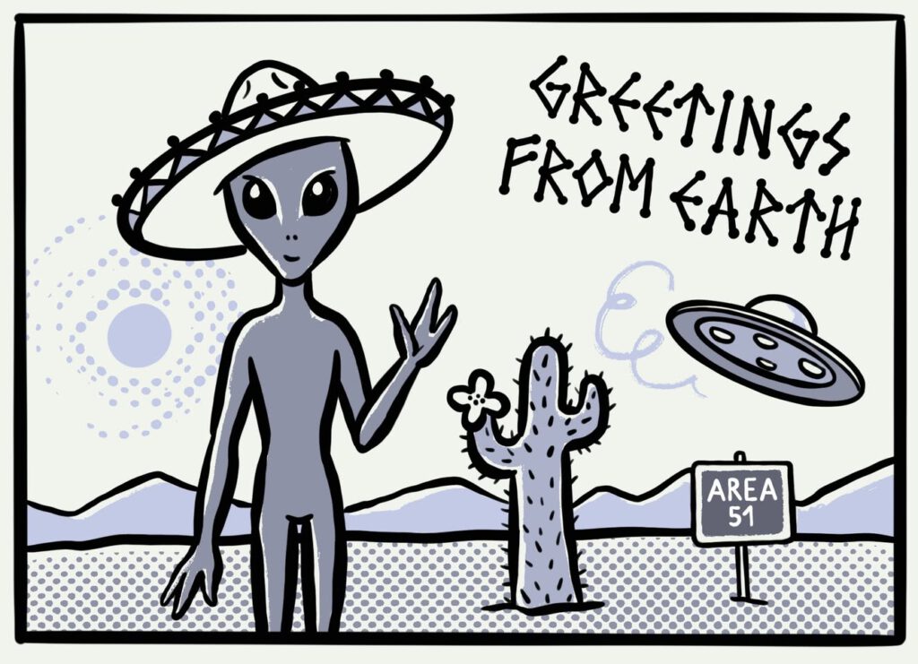 »Greetings from earth«, Digitalzeichnung mit Procreate, 2025